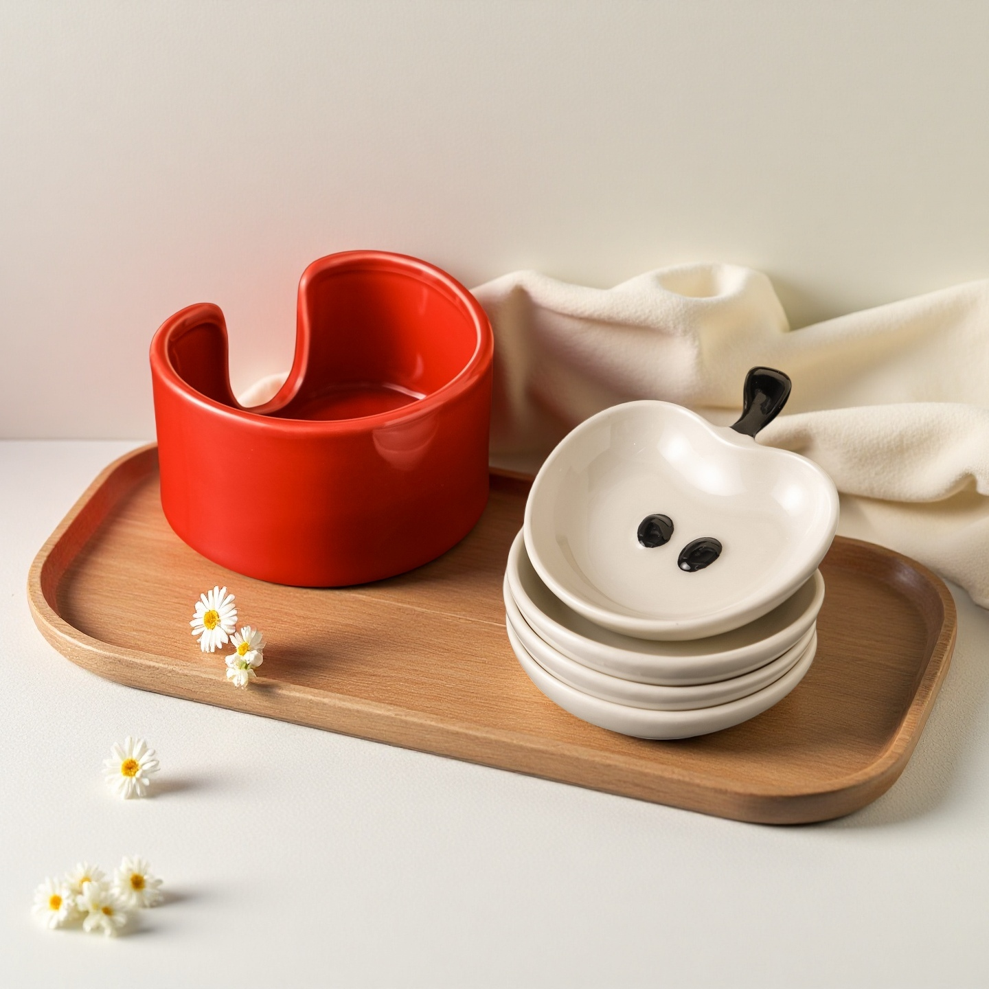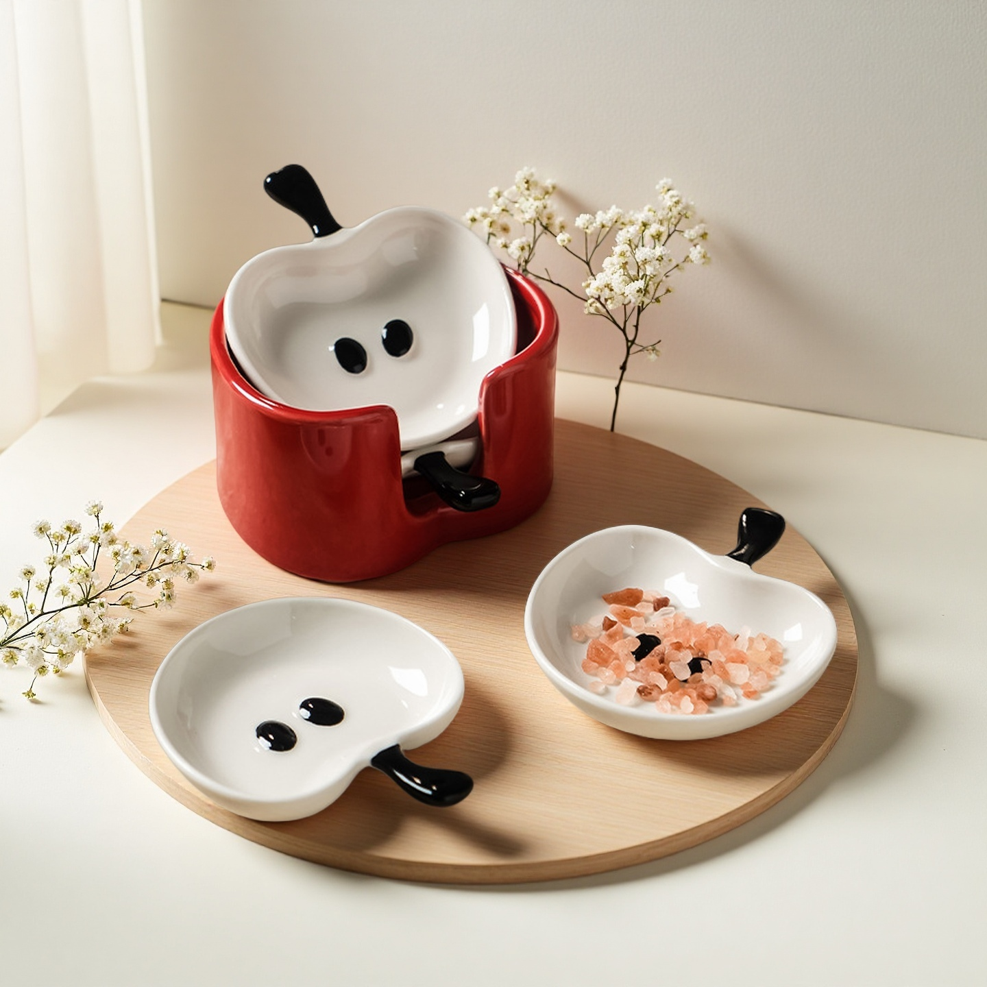 Apple-Shaped Ceramic Dipping Sauce Dish Set