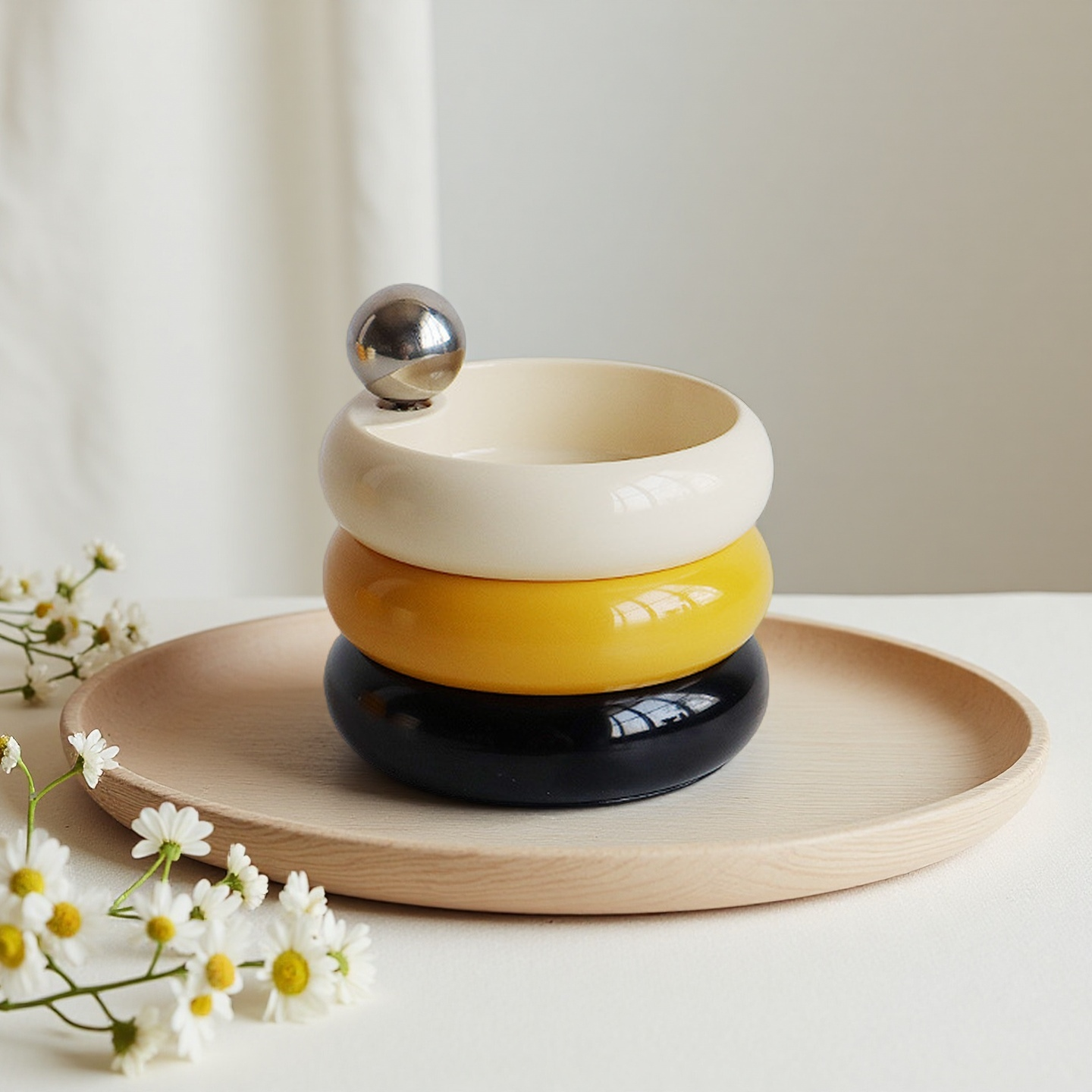 Multi-Color Ceramic Jewelry Storage Box with Rotating Layers
